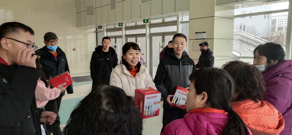 集中学习后,大家打扫体育馆卫生、消毒。为了感谢多年来馆内保洁和保安人员的辛苦付出,为了他们每天中午能吃上热乎饭菜,全体党员自愿出资为馆内5名保洁和2名保安人员购买了保温饭盒。大家打扫卫生结束后,当面把保温饭盒赠给了他们。